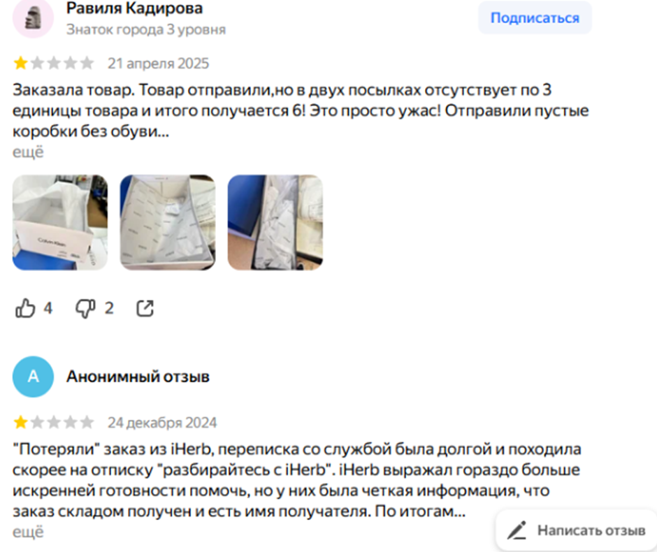 Но есть и негативные отзывы на Undbox com. В них люди пишут о том, что им приходили пустые коробки с заказами, некоторые заказы были и вовсе потеряны.