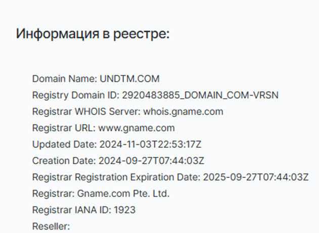 Площадка создана в конце сентября 2024 года, в США. Эту информацию легко проверить по домену undtm com. За такое короткое время невозможно стать успешным, опытным и известным участником финансового рынка.