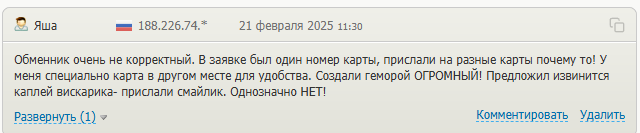 Однако есть и те, кто остался недоволен работой проекта. Один из пользователей, например, по неизвестным причинам получил перевод сразу на несколько карт, хотя указывал реквизиты только одной. Это не делает обменник мошенническим, однако для некоторых такие нюансы являются важными.