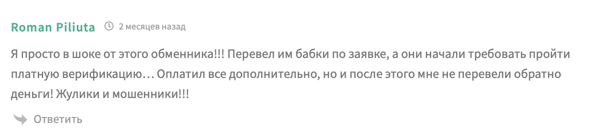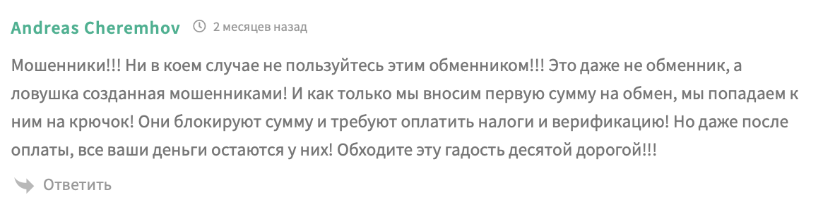 Остаться без криптовалюты на данном сервисе очень легко. Обманная схема от подобных скамеров выглядит просто, но работает как часы. Сперва пользователь создает заявку, потом переводит крипту или электронные деньги. На вид все работает и кажется нормальным: приходит подтверждение, всплывает просьба о недолгом ожидании обмена.