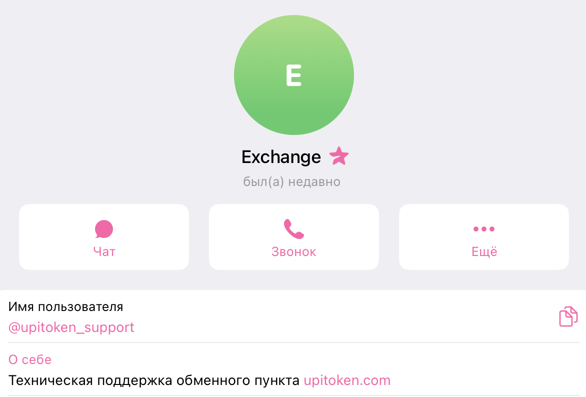 У конвертера нет иных источников кроме сайта Upitoken com. Поддержка клиентов ведется исключительно через Telegram-чат Upitoken support, где за все отвечает только один аккаунт с описанием «техподдержка обменного пункта».