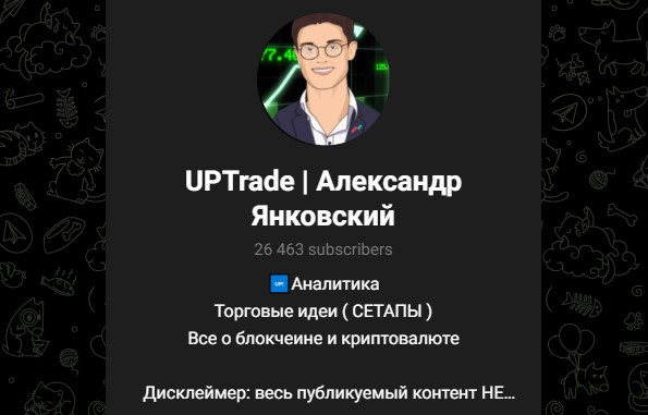 На канале видны 26 000 подписчиков, из которых около 4500 просматривают посты каждый день. Автор канала UpTrade Александр Янковский изредка публикует свои фото, не прячет лицо. Неизвестно, как его на самом деле зовут, в Телеграме зарегистрирован как @yankovsky_alex.