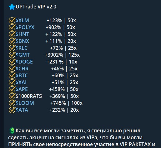 Канал @alex_uptrade работает в Телеграме с января 2023 года, создан трейдером, якобы делающим огромную прибыль на криптовалютном рынке. Толком ничего о себе не рассказал, даже в первой записи на канале не представился, а начал выдавать сигналы по фьючерсам.
