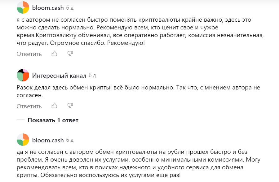 Найденные положительные отзывы об использовании обменника не внушают доверия из-за неестественного содержания. Нет указания конкретных направлений обмена, а также сроков исполнения заявки. Также часть мнений составлена с одного аккаунта и представляет собой один и тот же текст с минимальными изменениями.