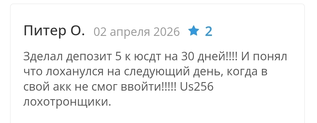 Us256 com отзывы реальных пользователей и жалобы на развод начали появляться почти сразу после запуска. Один из участников сообщает, что внёс 5 000 USDT на 30 дней и уже на следующий день не смог войти в свой аккаунт доступ заблокирован.
