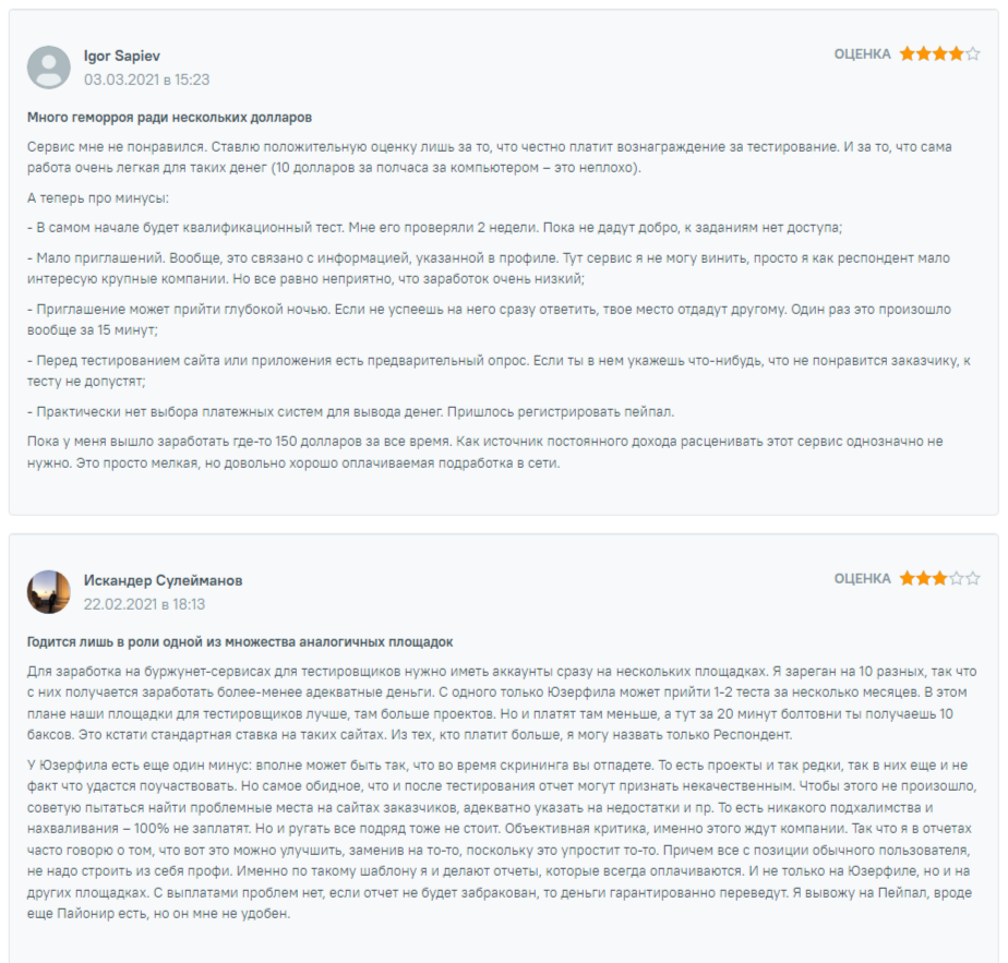 Эти отзывы оставили участники опросов. При этом от заказчиков, для кого и создавался проект, высказываний никаких не видно. Получается, что сервис не смог заинтересовать владельцев компании, но привлек людей, который хотели получить легкий заработок.