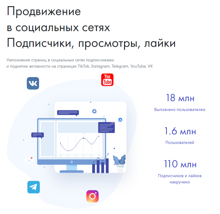 Сервис V Like Ru поизициницертся как плаформа, которая одним помогает раскручивать и продвигать свои соцсети, а другим на этом получать заработок. В возможности источника входит накрутка: