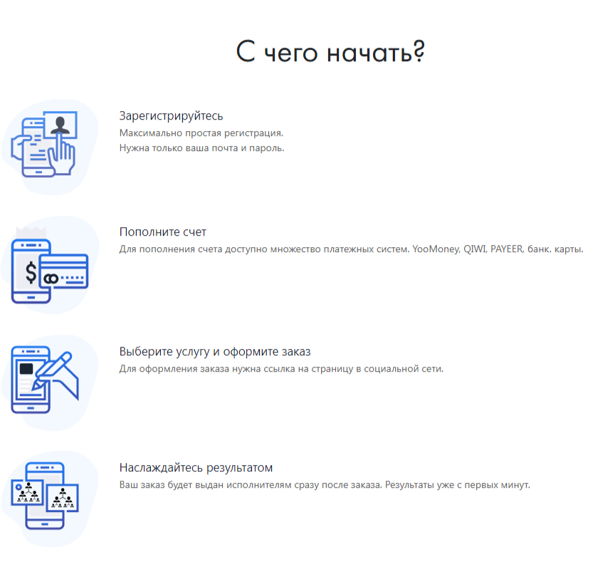 Чтобы начать сотрудничество с площадкой «В Лайк», нужно пройти короткую и быструю регистрацию. После этого зазачинку нужно пополнить счет удобным способом: через электронный кошелек, банковскую карту и так далее. Дальше необходимо выбрать услугу и выслать ссылку на страницу в соцсети, где нужно накрутить активность.