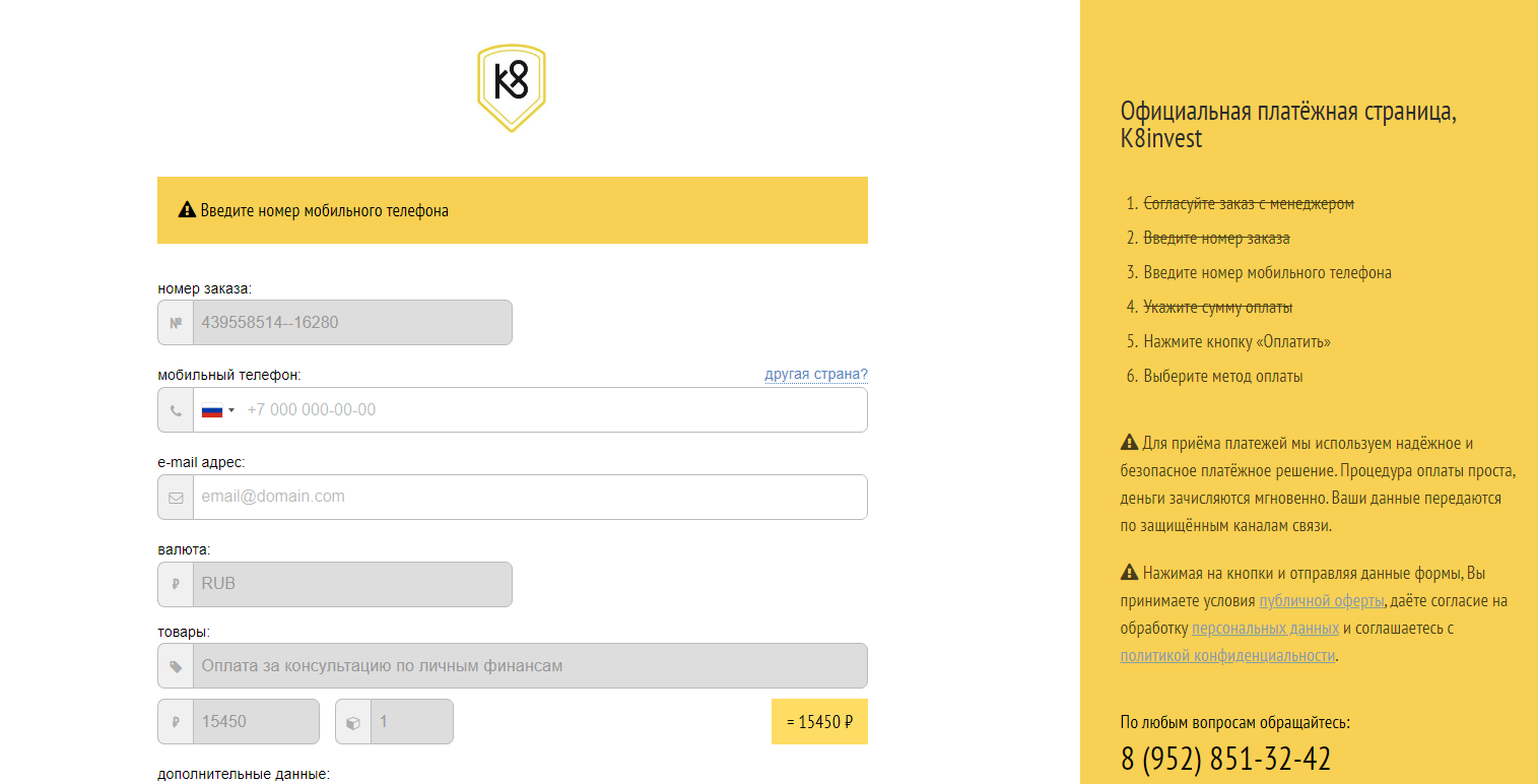 В том случае, если клиент решится выбрать один из пулов и внести свои средства, его перенесет на отдельную страницу, созданную самим Вадимом Бесединым K8invest.