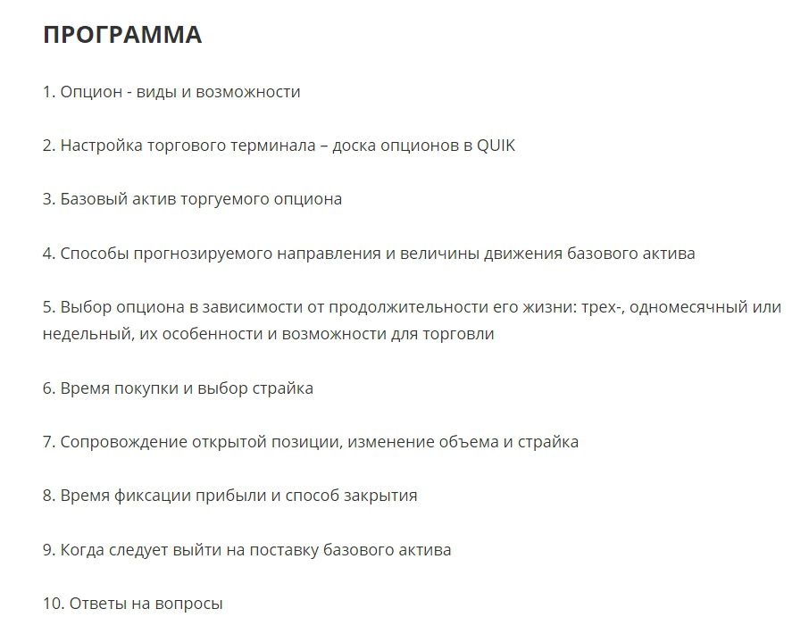 На одном из сайтов нам удалось найти обучающие курсы торговли опционами Валентина Кравчука. Они представлены в виде вебинаров, где рассматриваются вопросы спекулятивной торговли в этой сфере. Тематика: