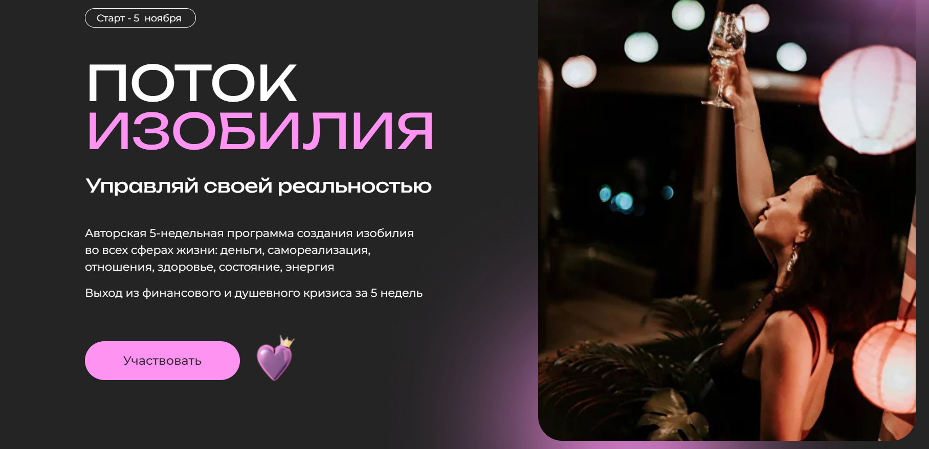 Есть на сайте и раздел с инвестициями, однако на момент написания статьи (октябрь 2024 года), нам не удалось в него перейти. Вместо этого возникает огромный баннер с завлекающим названием Поток изобилия.