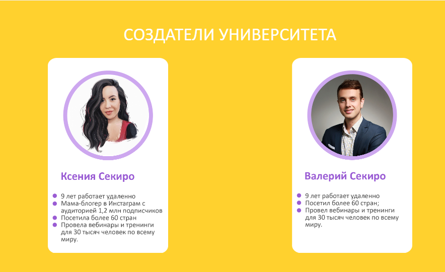 Университет удалённой работы – образовательная платформа, создателями которой выступает Валерий и Ксения. Наставниками и кураторами выступают специалисты из различных сфер.