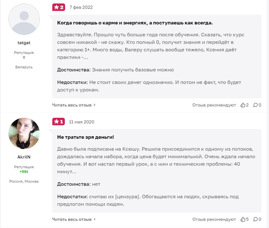 При том, люди выражают недовольство как курсами профессий, так и мистическими программами от Ксении.