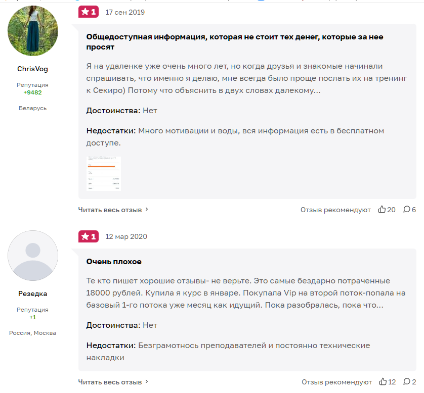 Вроде есть обучение компьютерной грамотности, уроки для копирайтеров – вполне стандартные программы. Но в «университете удаленных профессий» нам удалось найти только несколько уроков для удаленной работы. Остальные же программы смахивают на шарлатанство. В курсах Секиро рассказывается о «кармическом законе денег», рассматриваются различные техники. Все это притянуто к реальному онлайн-образованию за уши.