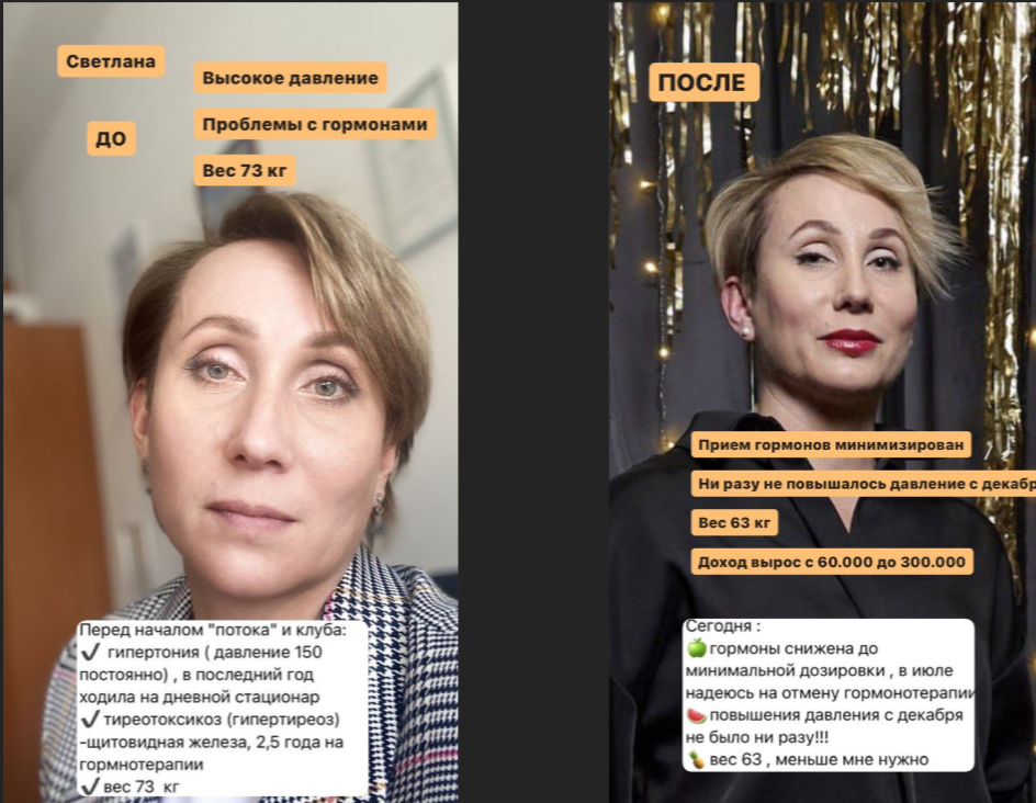 Посмотрев эти истории возникает еще больше вопросов. Кажется, будто курсы не только про деньги, но и про сексуальную жизнь, похудение и даже борьбу с хроническими заболеваниями. Только как это связано с марафонами – неясно. Однако в своем инстаграм Ксения Секиро присваивает все успехи учеников себе.