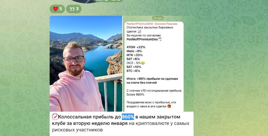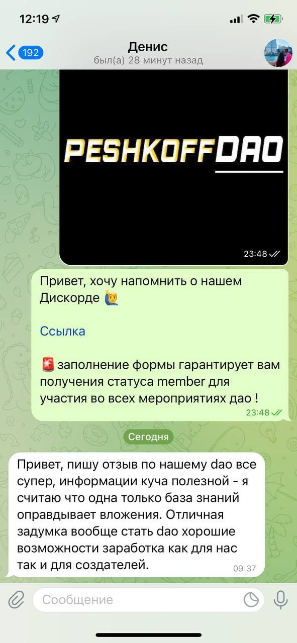 Все инвесторы канала Василия Пешкова имеют доступ в отдельный закрытый онлайн клуб — «PeshkoffPremiumDAO». В нем автор вместе с подписчиками обсуждает важные вопросы, они ведут совместную работу на криптовалютной бирже. Трейдер делится собственными сделками, вкладывает деньги в проекты, которые находятся на ранней стадии разработки, и отправляет денежные суммы на работу в пассивные стратегии инвестирования под 50-100 процентов годовых.