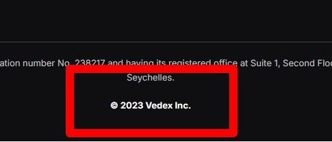 Согласно информации на официальном сайте, Vedex зарегистрирован на Сейшельских островах под номером 238217. Юридический адрес компании – офис 1, второй этаж, здание Sound & Vision House, улица Фрэнсис Рейчел, Виктория, остров Маэ, Сейшельские Острова. Но, стоит отметить, что регуляторов у Vedex нет, а значит может легко уйти от ответственности.