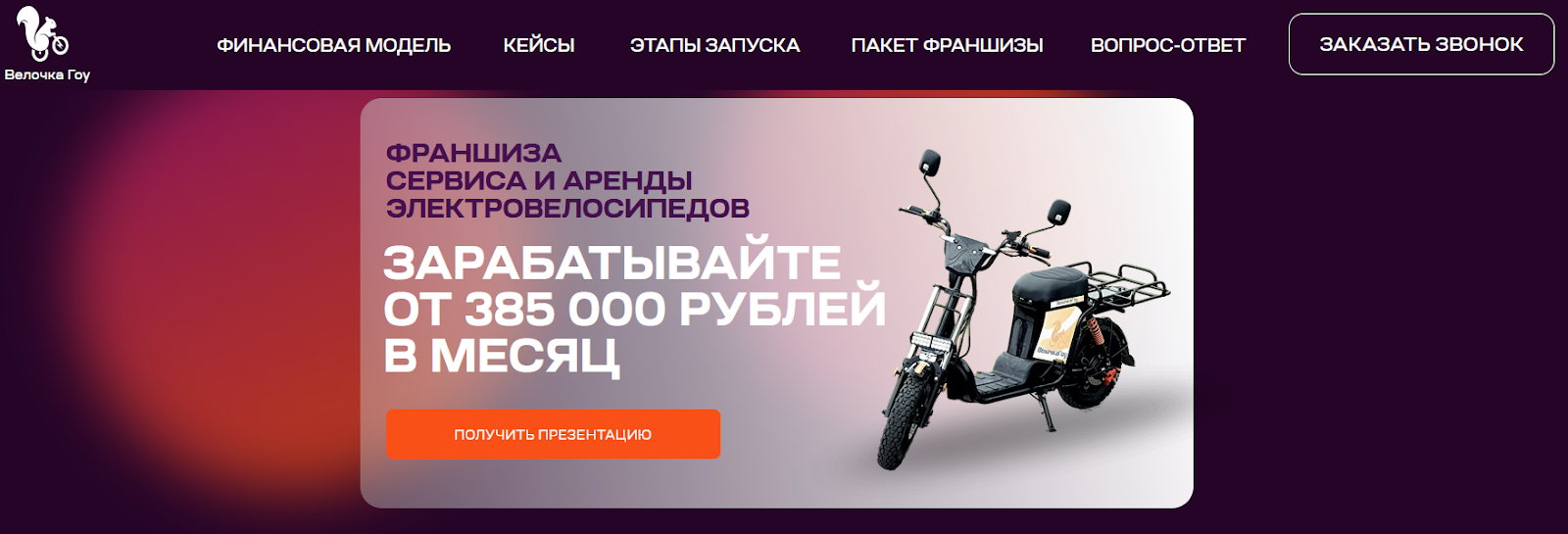 Велочка Гоу Франшиза: отзывы партнеров о возможности заработать на аренде электровелосипедов, предложения от Velochka Go