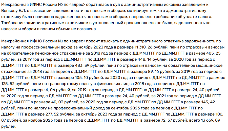 Декабрь 2024 года принес новые проблемы. Дзержинский суд взыскал с инвестора Венкова Евгения Леонидовича долги по налогам – 13 659 рублей. Плюс госпошлина 4 тысячи.