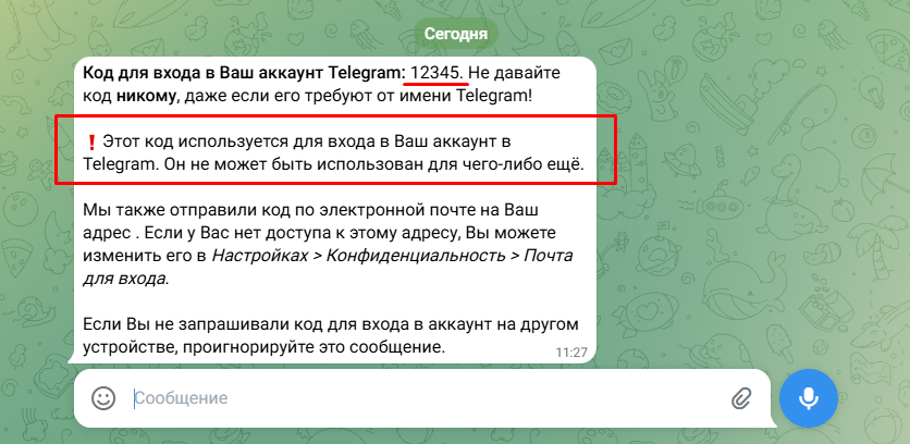 Но на самом деле мошенники пробуют зайти в ваш аккаунт и украсть данные. Система безопасности мессенджера заблокирует вход с нового IP адреса и потребует ввести номер из сообщения от технической поддержки, именно его пытаются заполучить аферисты. Произойдет взлом вашего профиля или нет, зависит от ваших действий. Мошенничество прекратится, если вы просто закроете бота и отправите жалобу, но в случае отправки кода аферистам — они автоматически получат доступ.