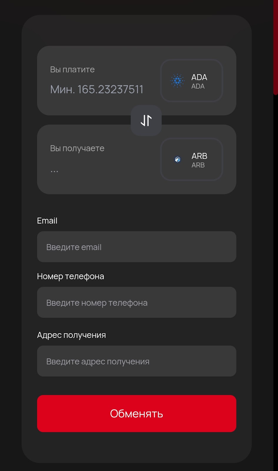 На «Верзоне» окно криптовалютного обмена выглядит стандартно – нужно указать пару, количество, электронную почту, номер телефона и адрес получателя. С одной стороны все просто, но с другой – неизвестно куда еще могут попасть эти данные. На сайте нет пользовательского соглашения или других документов, которые бы регулировали этот вопрос.