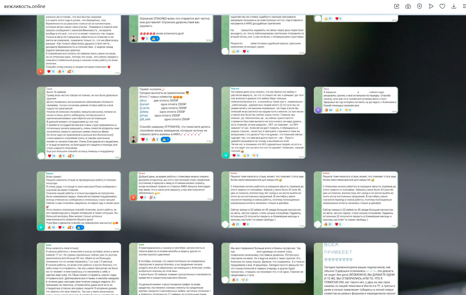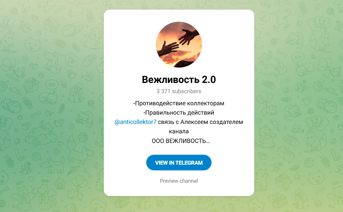 Обзор антиколлекторской компании “ООО Вежливость”: анализ телеграмм канала и отзывы о проекте online
