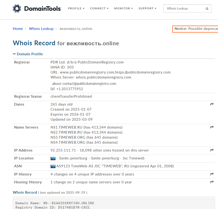 Официальный сайт — вежливость.online, домен создан 7 января 2025 г., а сам сайт на сервере TimeWeb в Санкт-Петербурге. Основной канал коммуникации с клиентами проходит через ТГ Вежливость 2 0, на котором на конец сентября 2025 г. 3 371 подписчика, а также через активные страницы в Instagram anticollektor7 и ВКонтакте, где публикуются новости, кейсы и инструкции.