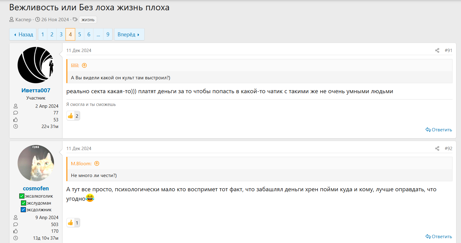 Но на независимых форумах картина меняется. Люди жалуются на лицемерие, пустые разговоры и на то, что за деньги навязывают услуги, которые в открытом доступе можно получить бесплатно.