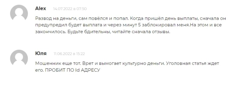 На сторонних тематических ресурсах удалось обнаружить несколько отзывов о Viktor Money, характеризующих трейдинговую платформу в качестве первосортного скама. Обманутые пользователи рассказывают о фактах блокировки контактов после пересылки денег — аферист применяет одну из типовых схем нелегальных трейдеров, позволяющих безнаказанно уходить от ярости вкладчиков после хищения финансовых средств.