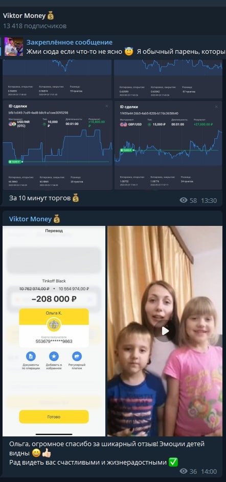 Подобный подход повышает доверие к псевдофинансовому проекту со стороны наивных трейдеров, чем умело пользуется Telegram-аферист для незаконного обогащения. Факты мошенничества на платформе подтверждаются реальными отзывами подписчиков Viktor Invest, разочаровавшихся в криптовалютном трейдере Викторе Сергеевиче в рамках непродолжительного общения.