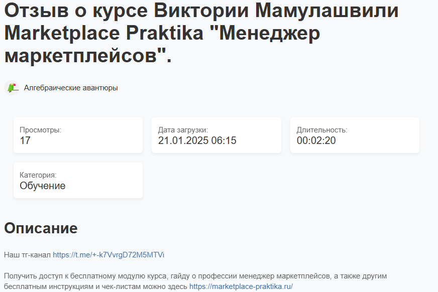 Обзор проекта Marketplace Praktika: отзывы о курсе Виктории Мамулашвили и что входит в обучающую программу наставника