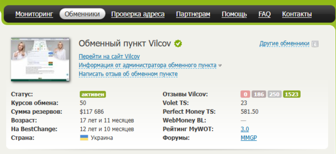 Отзывы об обменнике Vilcov