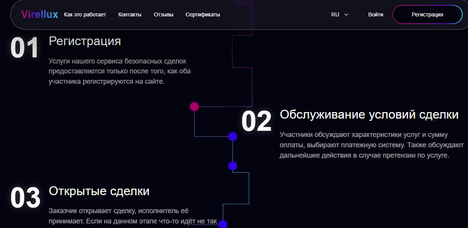 Virellux com позиционирует себя как надежный гарант для сделок пользователей. Задача компании – минимизировать финансовые риски своих клиентов и упростить процесс заключения договоров между ними. Стоит ли пользоваться услугами данной компании или ее деятельность очередной фейк, расскажем в обзоре.