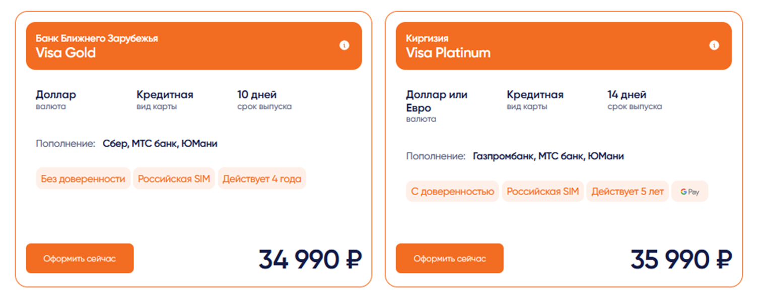 Компания Visa Tut предлагает быстрое изготовление карт MasterCard и Visa, в том числе, с поддержкой Google/Apple Pay. При необходимости доступно срочное получение уже через день после оплаты. Но точные сроки зависят от выбранного банка и страны оформления. Например, для Киргизии может пройти 9 дней. Турецкие банки работают быстрее – карту могут отправить уже через сутки после подачи и оплаты заявки.