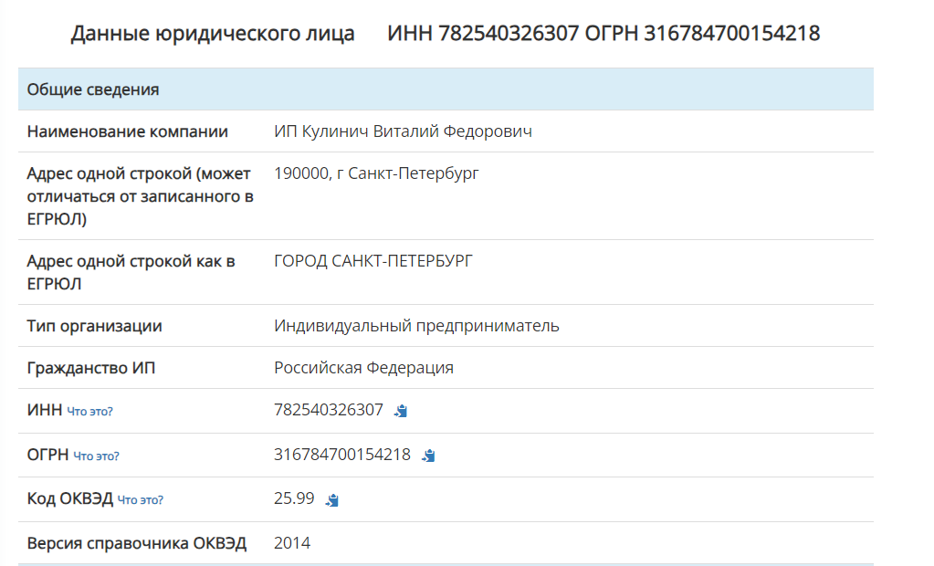 В ходе проверки была найдена еще одна примечательная деталь. При платном сотрудничестве подписывается договор, но оказывает услуги ИП Кулинич Виталий Федорович. Фамилия этого ментора является псевдонимом.