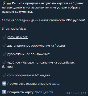 Очевидно, что он полностью контролируется создателями сервиса. Лента этого канала заполнена скриншотами благодарностей. В основном они касаются получения банковских карт. Люди пишут короткие сообщения: «Карту получил, спасибо», «Все работает отлично».