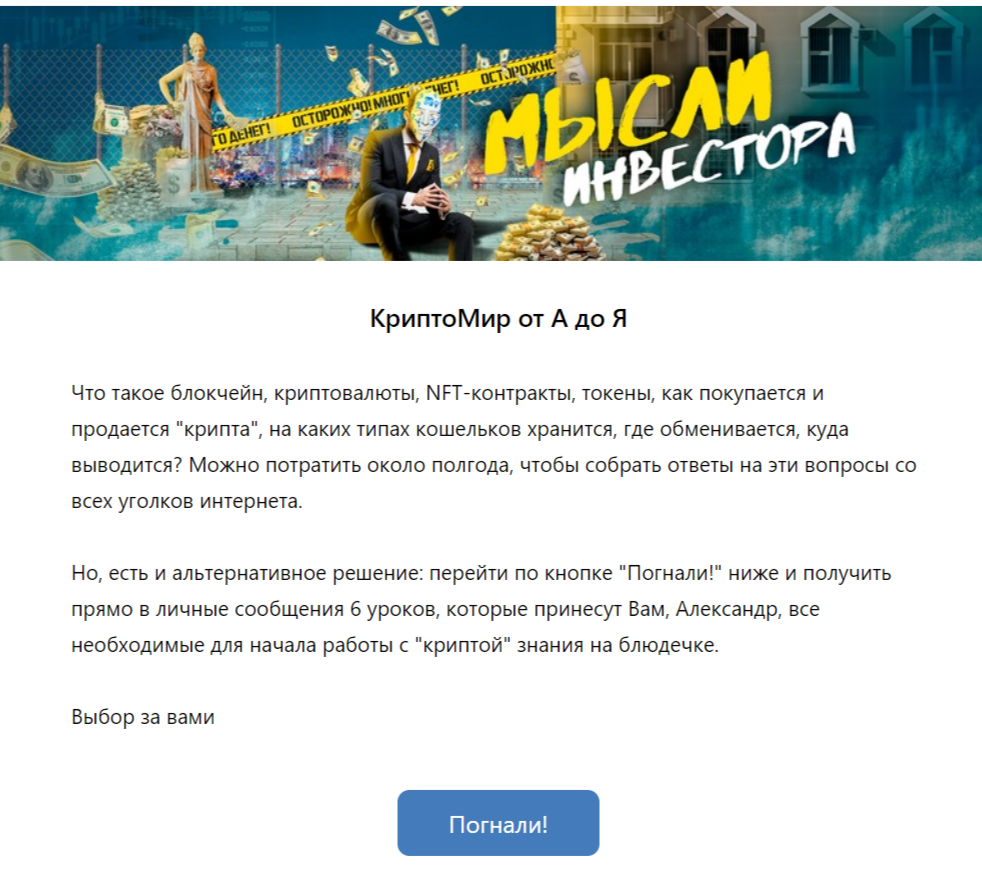 Еще один бесплатный проект — КриптоМир от А до Я. Он доступен в ВК и дает возможность пройти интерактивное обучение. Платить ничего не нужно.