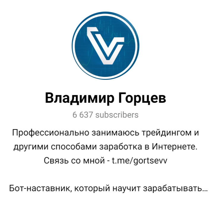 Для общения с подписчиками автор рассмотренных проектов предусмотрел специальный профиль VG. Страница Владимира Горцева в Телеграмме доступна по ссылке gortsevv. Также нельзя не отметить заброшенный проект, который ранее был популярным, а сейчас на нем остался только один фолловер. Ссылка — volozavrfx.