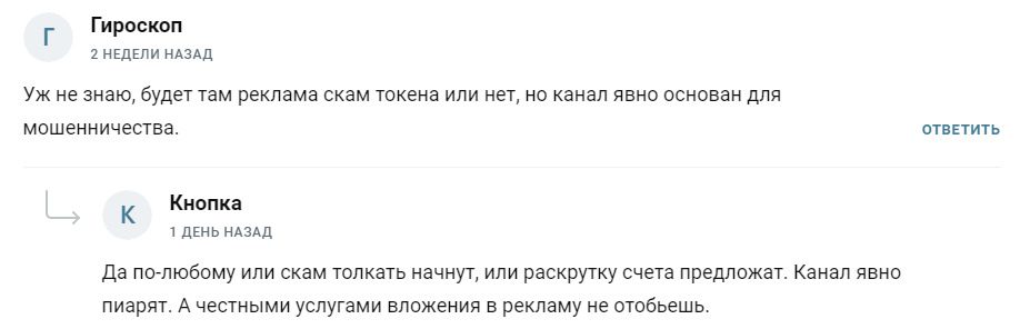 Канал можно использовать только как источник новостей и аналитики, но не стоит доверять советам этого коммерсанта. В целом, проект выглядит непрофессионально и ненадежно. Вывод – это лохотрон.