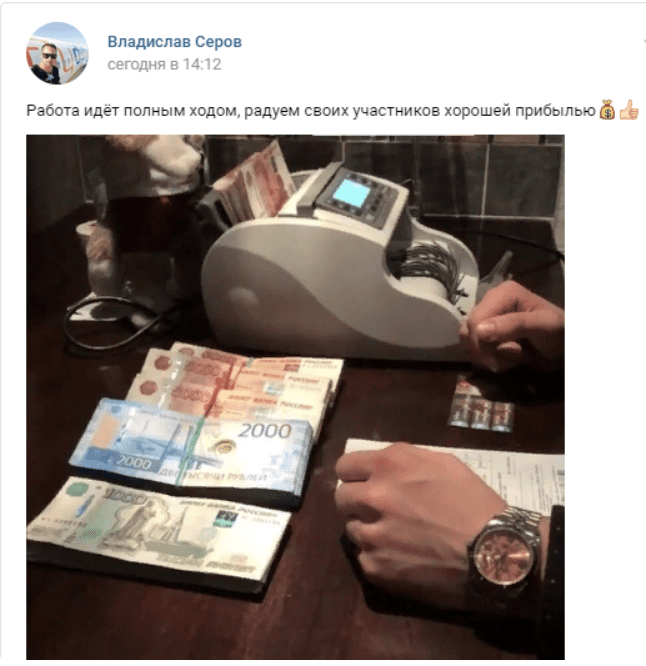 Основываясь на богатом опыте проверок ресурсов, подобных группе Владислава Серова, наши эксперты пришли к выводу, что раскруткой счета занимаются только аферисты. Считаем, что исключением проверяемый проект не является. Не рекомендуем его к совместному сотрудничеству.