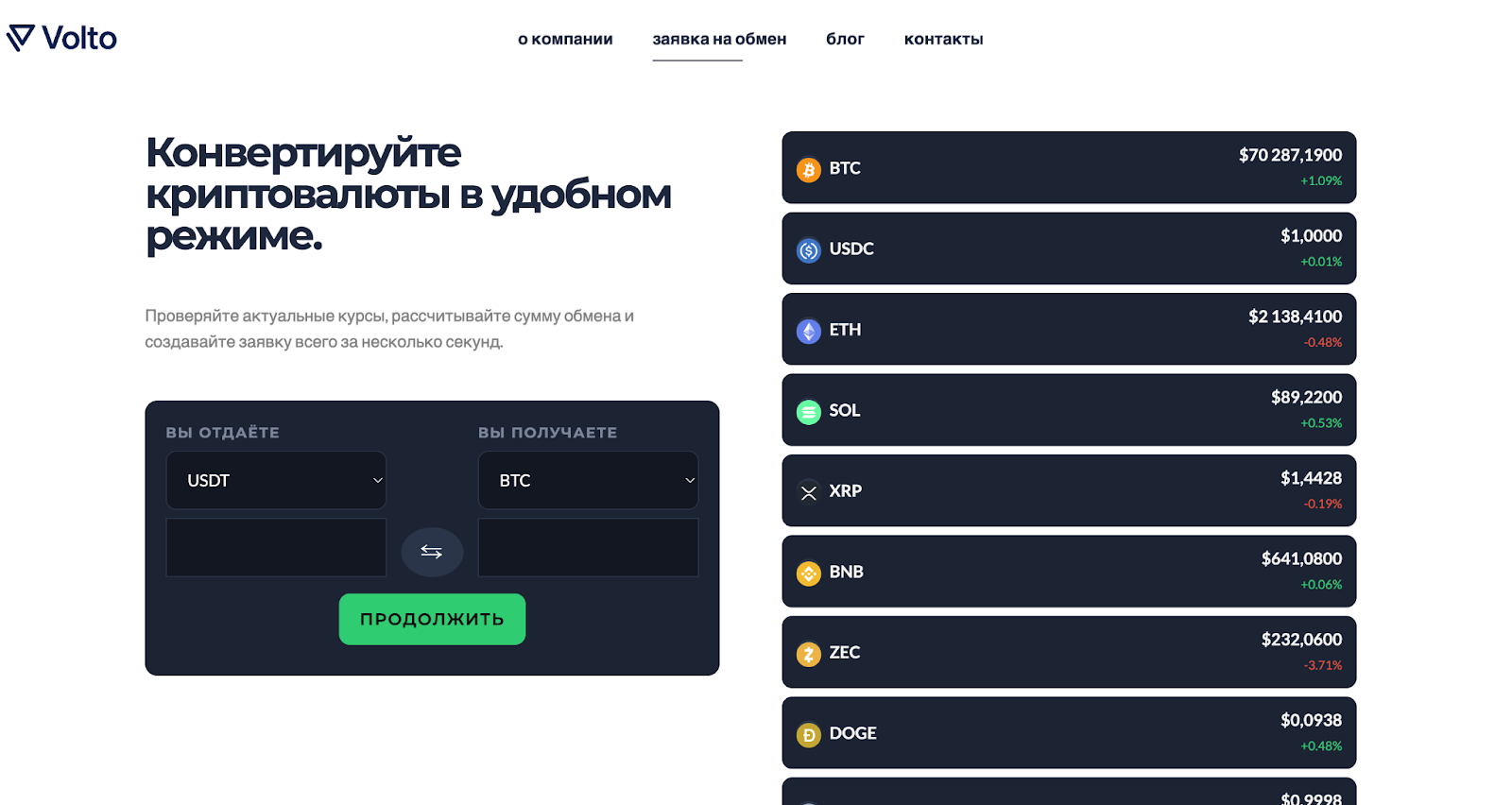 Volto Exchange — криптовалютный обменный сервис, предлагающий быстрые операции по обмену цифровых активов и переводам между различными платежными системами. Проект работает через сайт и предлагает стандартную для обменников модель работы. В этом обзоре рассмотрим особенности работы обменника, изучим функционал сайта и отзывы пользователей.