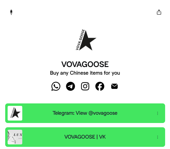 Vovagoose позиционируется как посредник для покупки товаров из Китая. Проект ведет деятельность через Telegram и социальные сети, предлагая пользователям помощь в заказе различных товаров.