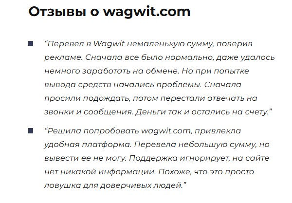 Если у вас были проблемы при использовании wagwit com, поделитесь отзывами. Ваши истории помогут другим избежать потерь.