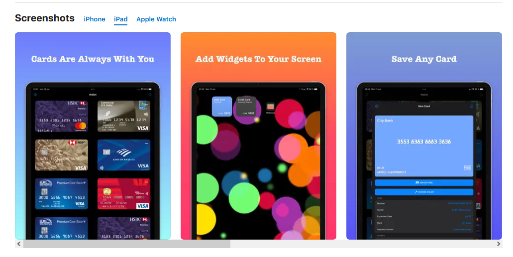 - Ложные заявления. Wallet App позиционируется как полная альтернатива Apple Pay с расширенным функционалом и лучшим дизайном, но на самом деле через приложение нельзя использовать карты для оплаты покупок, Wallet App – красивый органайзер;