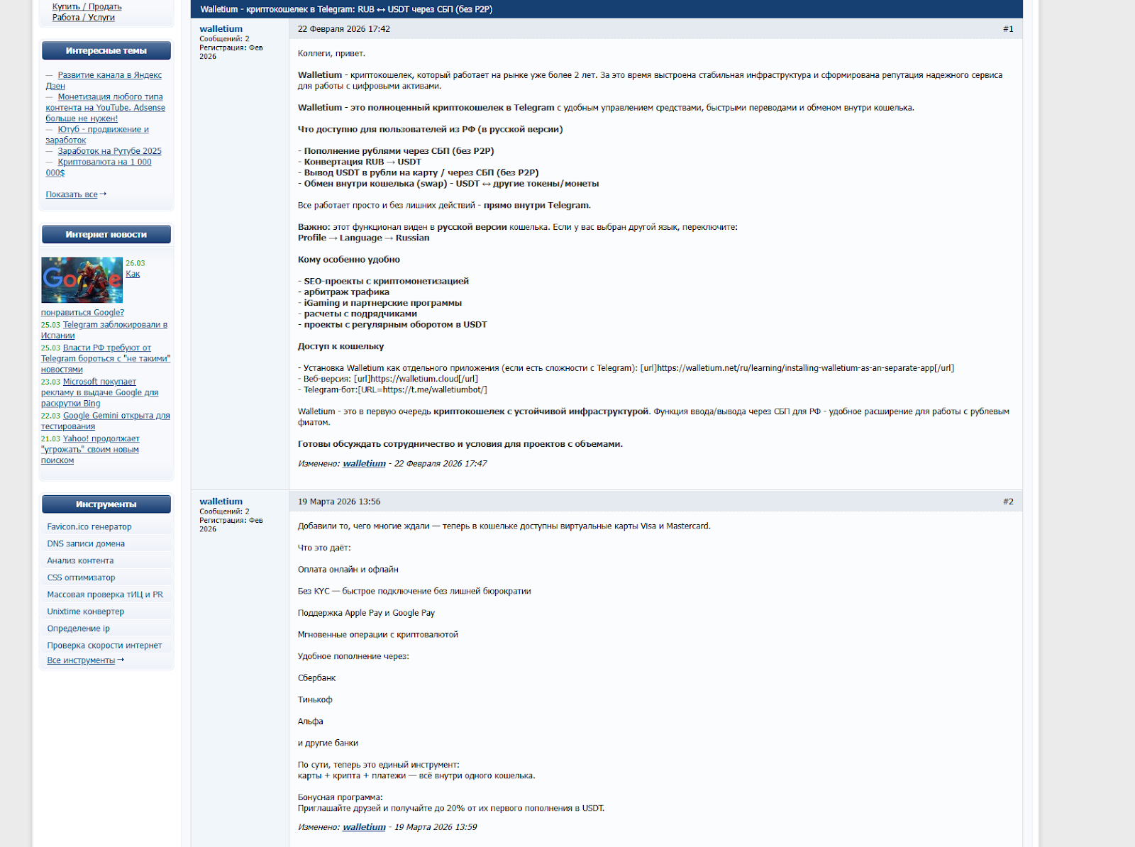 В сети мало отзывов о кошельке Walletium. На популярных обозревателях упоминаний нет. Удалось найти лишь две публикации на форуме от администрации «Валлетиум». В сообщениях упоминается удобный бот, моментальный вывод и бонусы реферальной программы до 20%, но явных скриншотов историй транзакций нет.