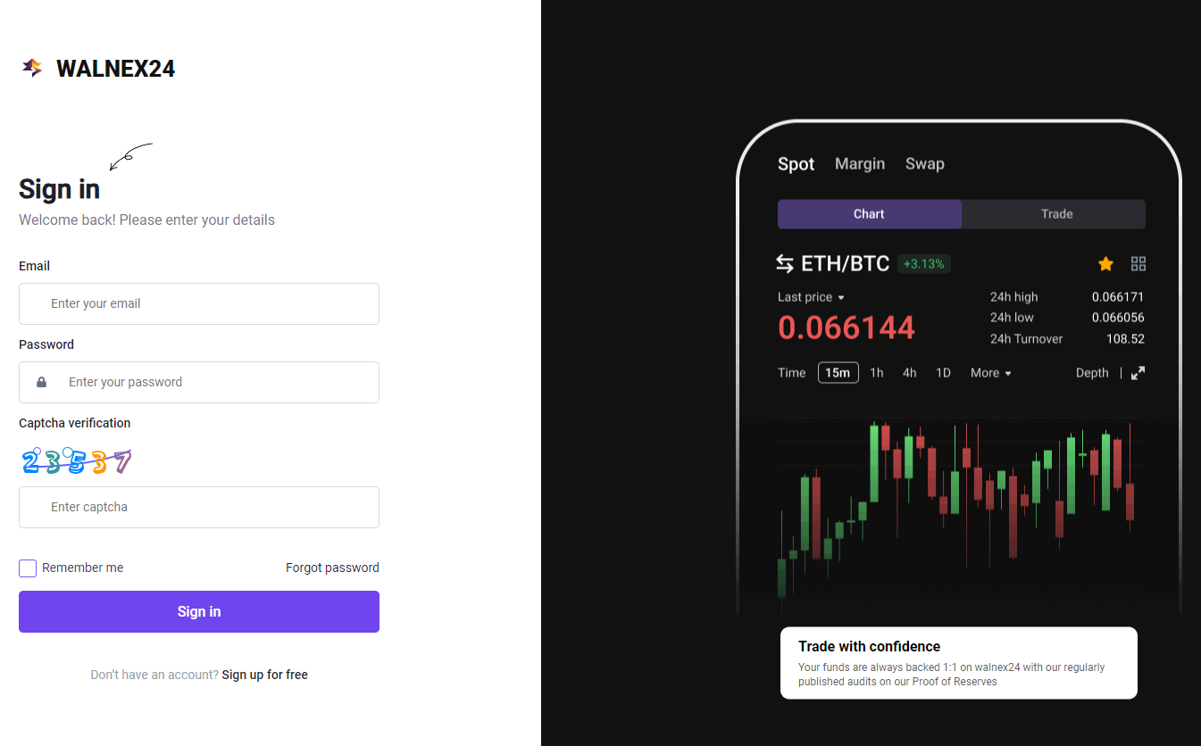 Биржа walnex24 — очередная ноунейм-контора. Мошенники даже не пытались создать видимость чего-то профессионального. Когда на официальном сайте при попытке кликнуть на любое поле открывается вход в личный кабинет — это говорит о многом.