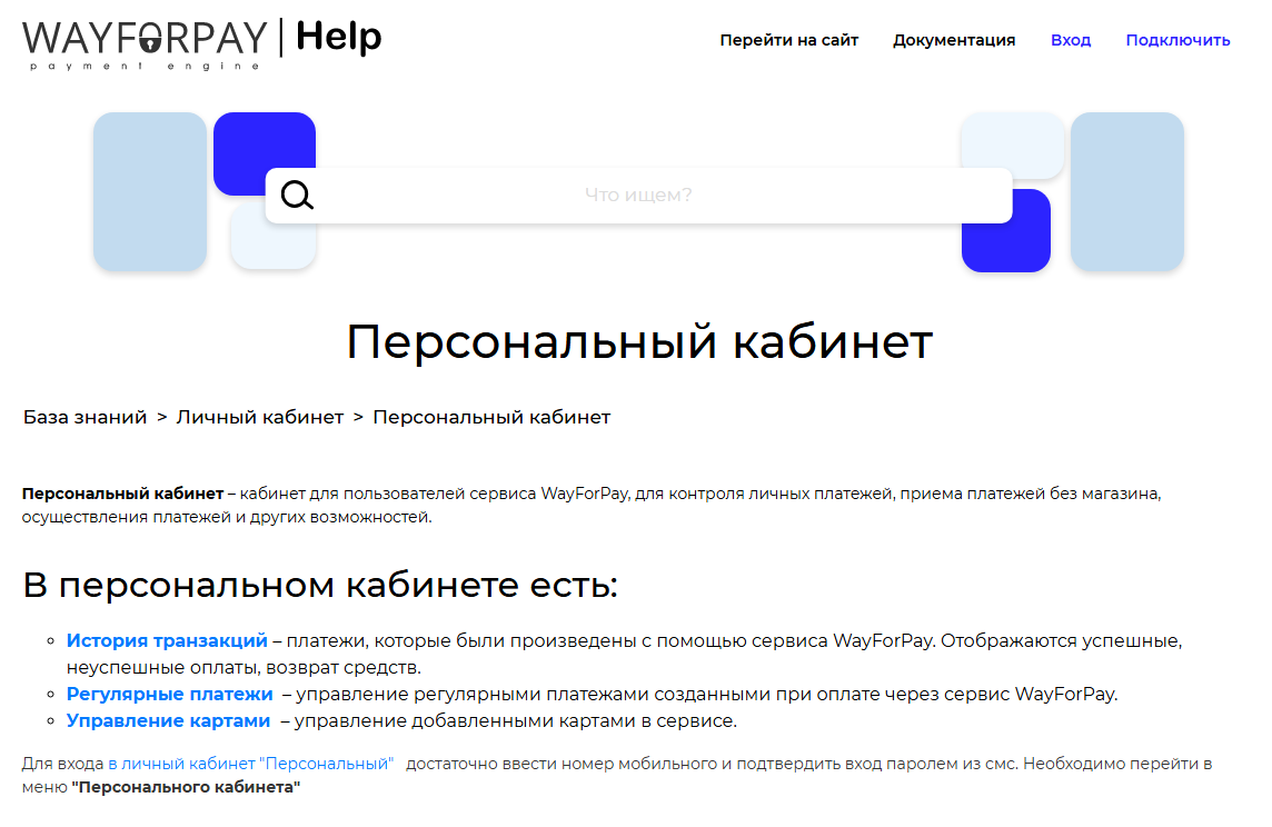 Также разработчики Way For Pay указывают в качестве преимущества наличие личного кабинета для обычных пользователей (плательщиков). Внутри него клиенты найдут следующие функции: