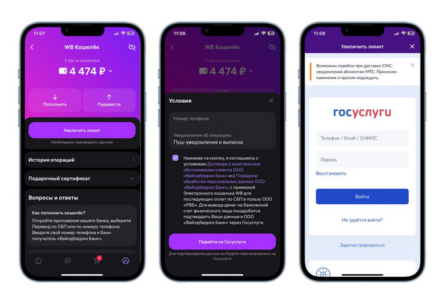Максимальный ВБ кошелек относится к улучшенным. Требуется пройти идентификацию через Госуслуги, открыть персональные данные для маркетплейса.