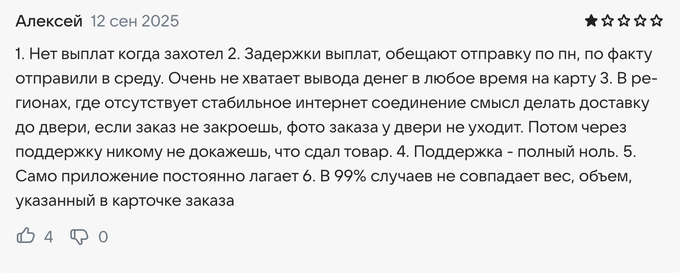 Мы допускаем возможность сотрудничества с проектом, однако помните, что платформа не выплачивает вовремя деньги, а если у вас нет автомобиля, заработать более-менее крупную сумму не получится. В отзывах сотрудники «WB Курьер» жалуются на техподдержку и отсутствие заказов из-за штатных работников ПВЗ.