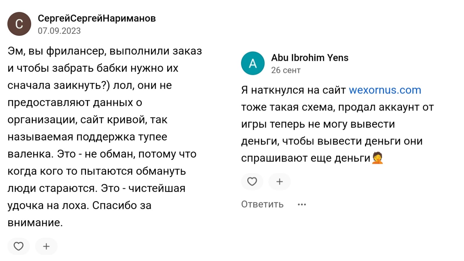 Отзывы о сотрудничестве с Wexornus: надежный проект Вексорнус или скам?